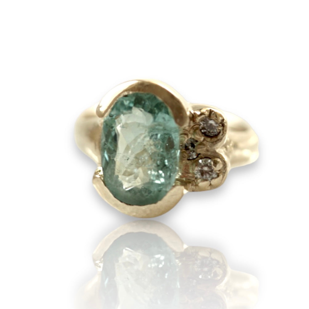 $1,010.00Light Blue Tourmaline Ring with diamonds