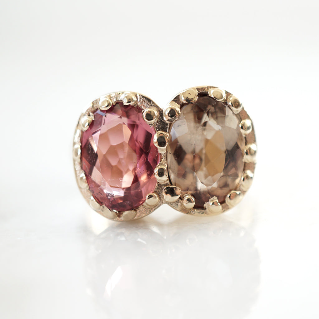 Sold OutBombé Ring Green/Orange sapphires in silver