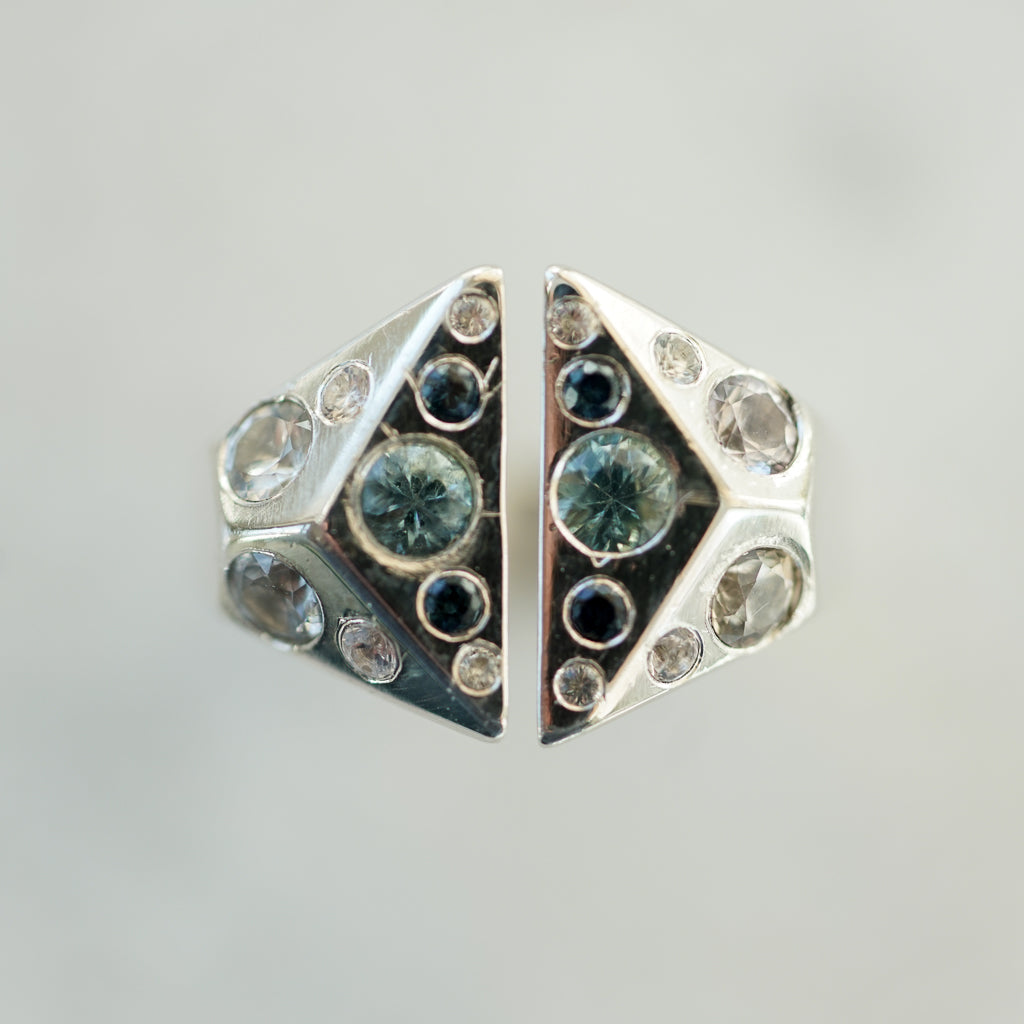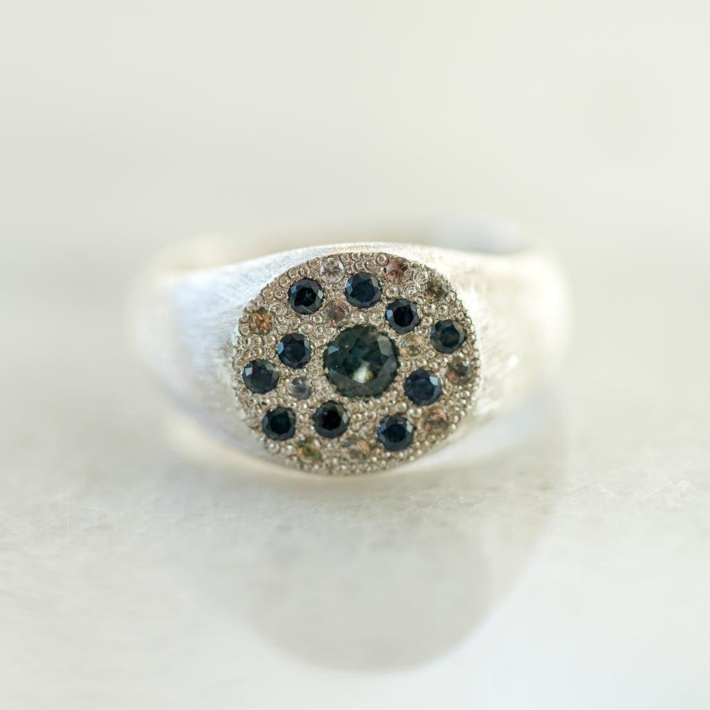 $360.00Blue and white sapphire geometric signet silver ring